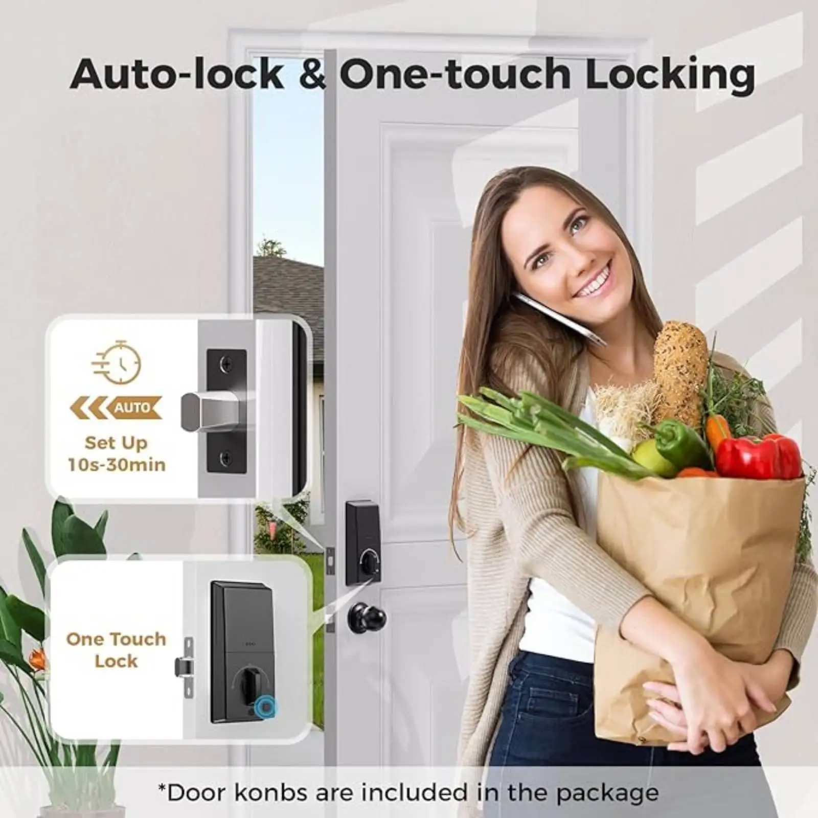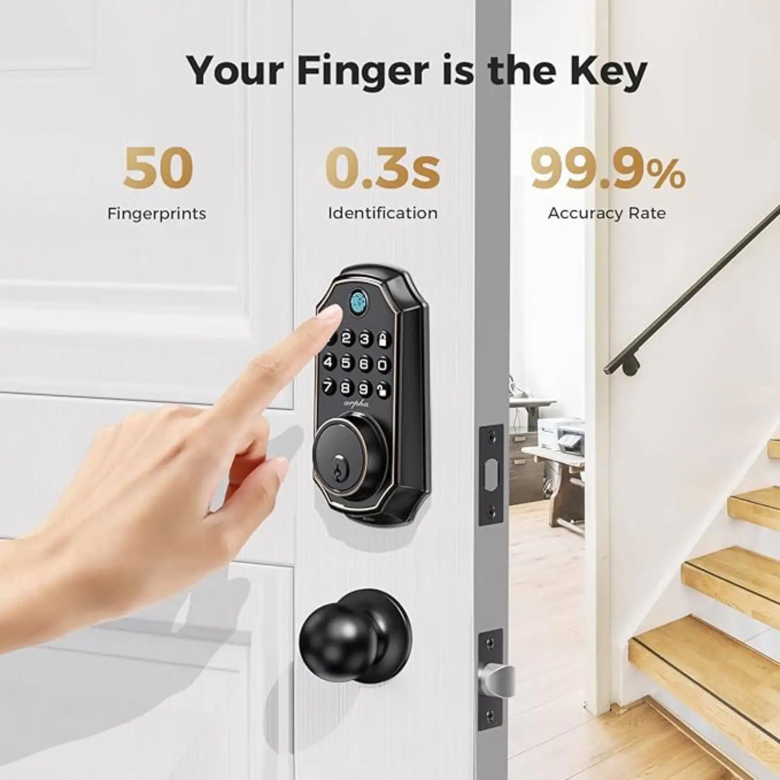 Your Finger is Your Key! This fingerprint door lock has AI self-learning function with a 99.99% biometric fingerprint recognition rate. Smart front door lock can recognize your fingerprint in just 0.3 seconds and unlock your door in 1 second. Say goodbye to keys and fumbling with locks.